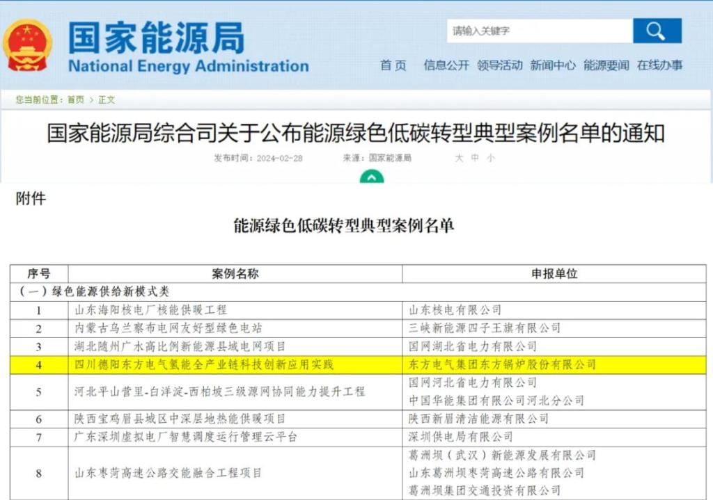 本网讯2月28日,国家能源局发布《关于公布能源绿色低碳转型典型案例名单的通知》,由东方电气集团旗下东方锅炉建设申报的四川德阳东方电气氢能全产业链科技创新应用实践从150余个案例中脱颖而出,成功入选国家能源绿色低碳转型典型案例。