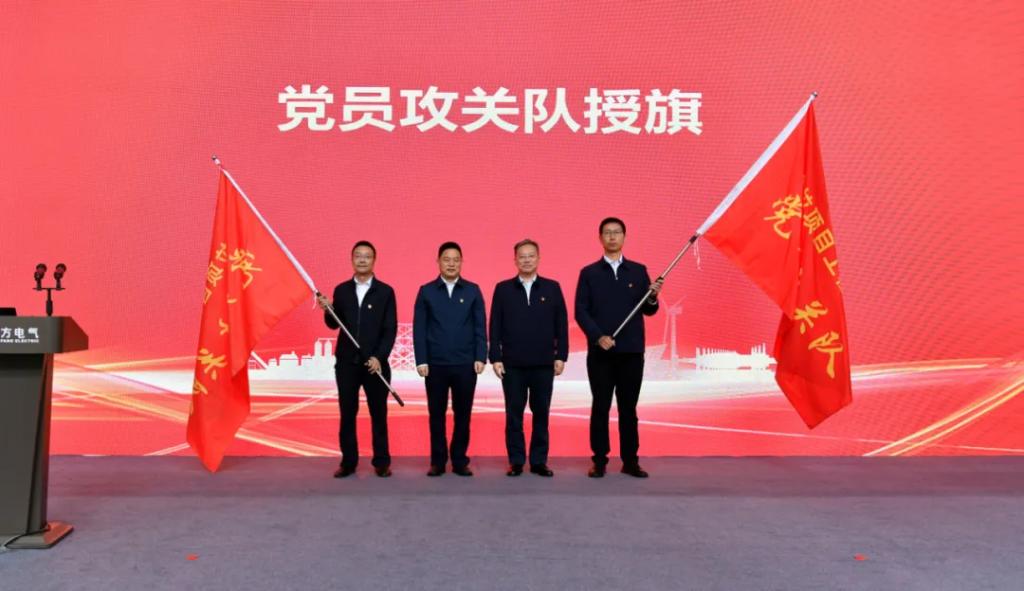 仪式上,东方电机党委、大唐西藏公司党委举行“链上党建”共建活动,发布了“链上党建”共建方案,双方签订共建协议。王军、沈鹏为大唐扎拉水电站项目工程建设党员攻关队、机组研制党员攻关队授旗。