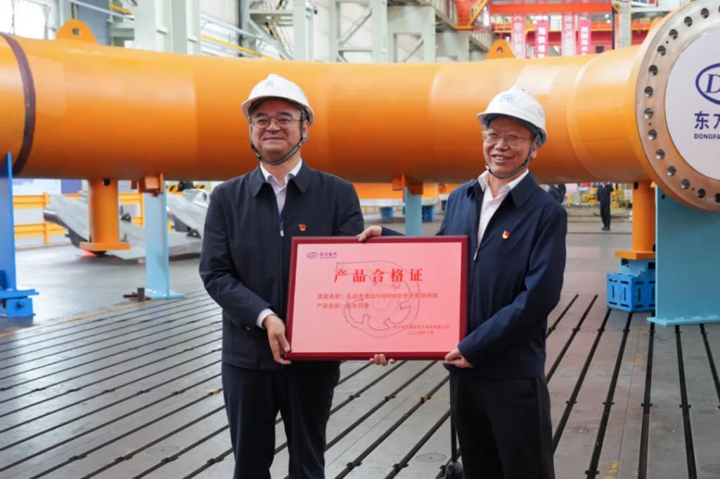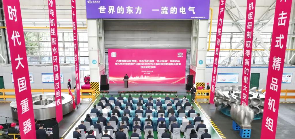 10月21日,由东方电气集团自主研制的世界首台500兆瓦冲击式水电机组配水环管率先完工交付,标志着我国高水头、大容量冲击式水电机组研制取得又一里程碑成果。东方电气集团党组成员、副总经理王军,大唐西藏公司党委书记、董事长沈鹏出席完工交付仪式。