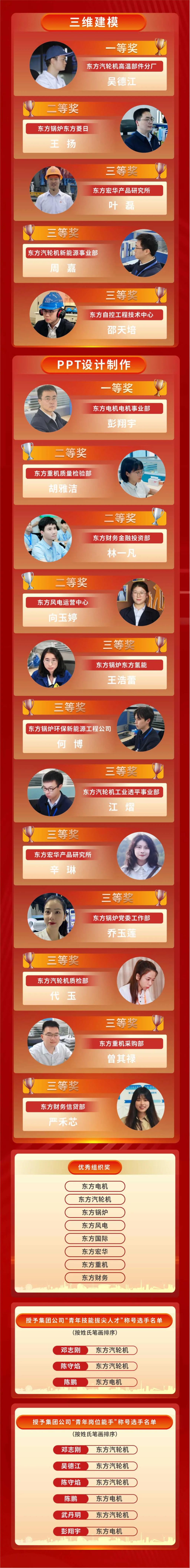 近日,东方电气集团第三届青年职业技能大赛成功举办。通过激烈角逐,共42位青年职工获奖。其中,6名选手被评为集团公司青年岗位能手,3名选手被认定为集团公司青年技能拔尖人才,10名选手获得职业技能等级(职业资格)晋升。