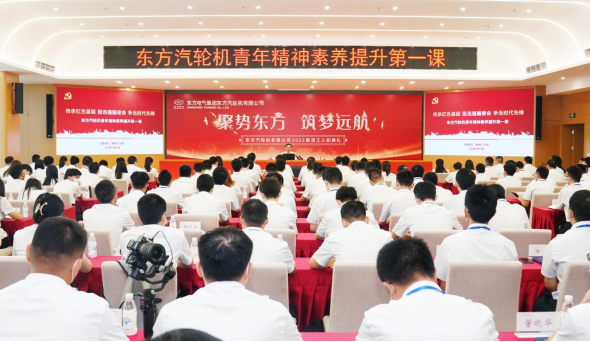 集团公司党组书记、董事长俞培根在东方电气集团青年精神素养提升工程动员部署会上,面向团员青年讲授青年精神素养提升“第一课”。引领全集团团员青年深入学习习近平总书记在庆祝中国共产主义青年团成立100周年大会上的重要讲话精神,沿着总书记指引的方向奋勇前进,激发广大团员青年为推动集团公司高质量发展、加快建设世界一流企业接续奋斗的精神力量。并深情寄语东方电气青年牢记领袖嘱托,勇担时代重任,不断增强做中国人的志气、骨气、底气,积极投身集团公司改革发展各项事业,以良好的精神风貌和优异的青春业绩迎接党的二十大胜利召开!
