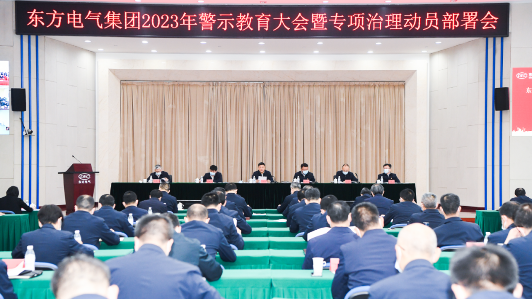 本网讯 3月16日,东方电气集团召开2023年警示教育大会暨专项治理动员部署会,深入学习贯彻党的二十大和二十届一中、二中全会精神,贯彻落实二十届中央纪委二次全会精神和国务院国资委有关部署,加强警示教育,启动专项治理,推动全面从严治党向纵深发展。集团公司领导俞培根、宋致远、张继烈、袁明刚、张彦军、李忠军出席会议。