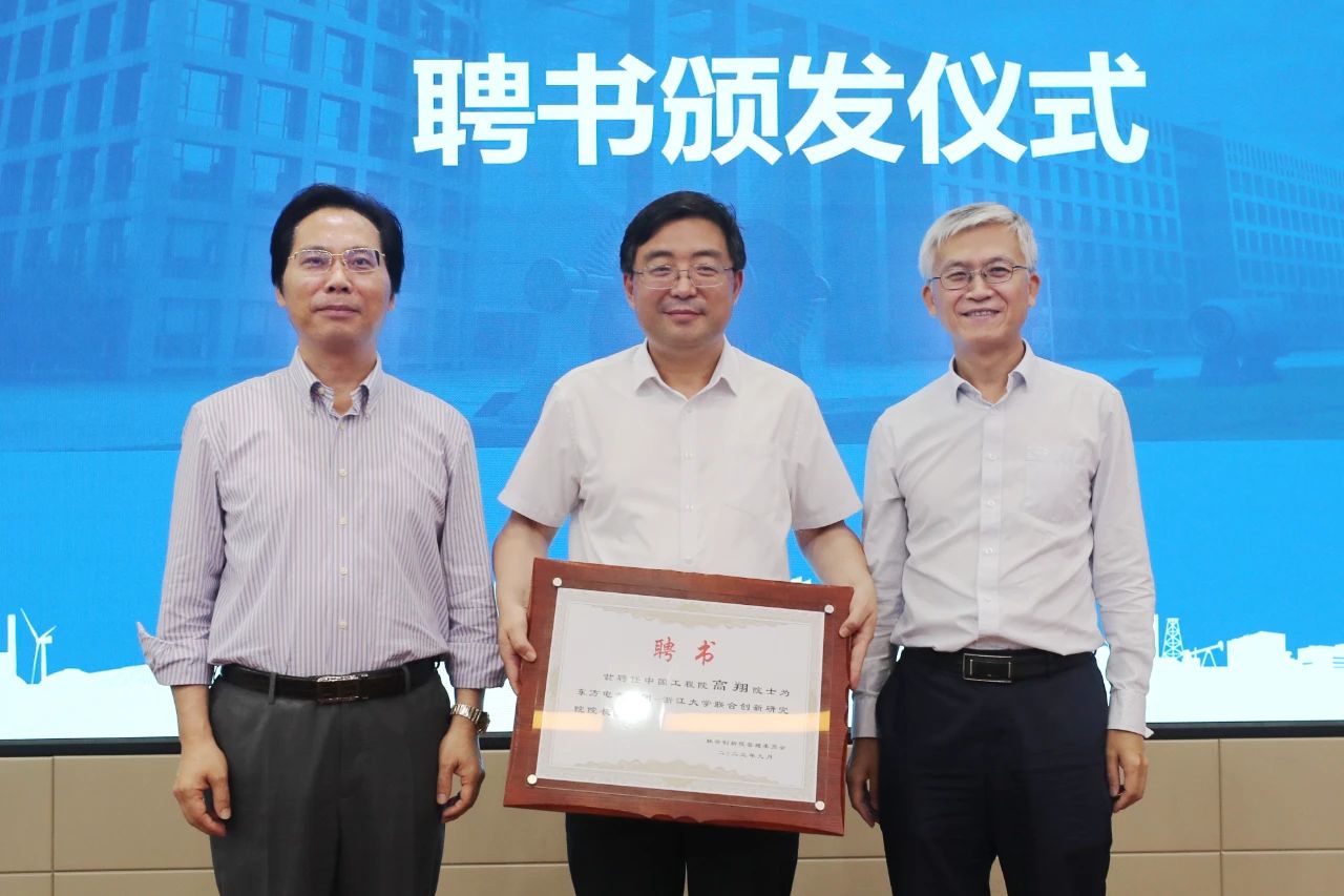 东方电气集团党组成员、副总经理张彦军宣布联合创新研究院管理委员会、院领导班子、专家委员会和技术委员会名单,并与浙江大学副校长黄先海共同为联合创新研究院院长、中国工程院院士高翔颁发聘书。