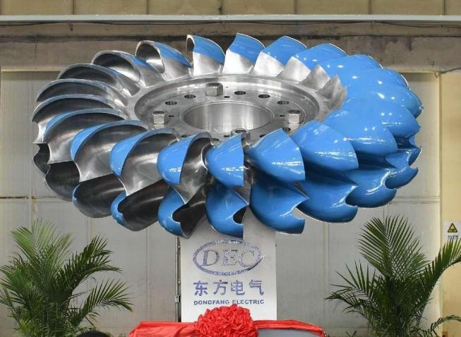 ◆产品简介:冲击式水电机组是服务国家“加快西南水电基地建设”重大战略需求的主力机型。目前,东方电机正在进行全球单机容量最大功率500兆瓦冲击式水电机组研制。该机组入选国家能源局能源领域首台(套)重大技术装备。研制过程中,东方电机创新应用了机器人电弧增材制造技术,也就是3D打印技术;实现了定制化设计和制造的“近净成形”,转轮表面粗糙度达到了镜面效果。