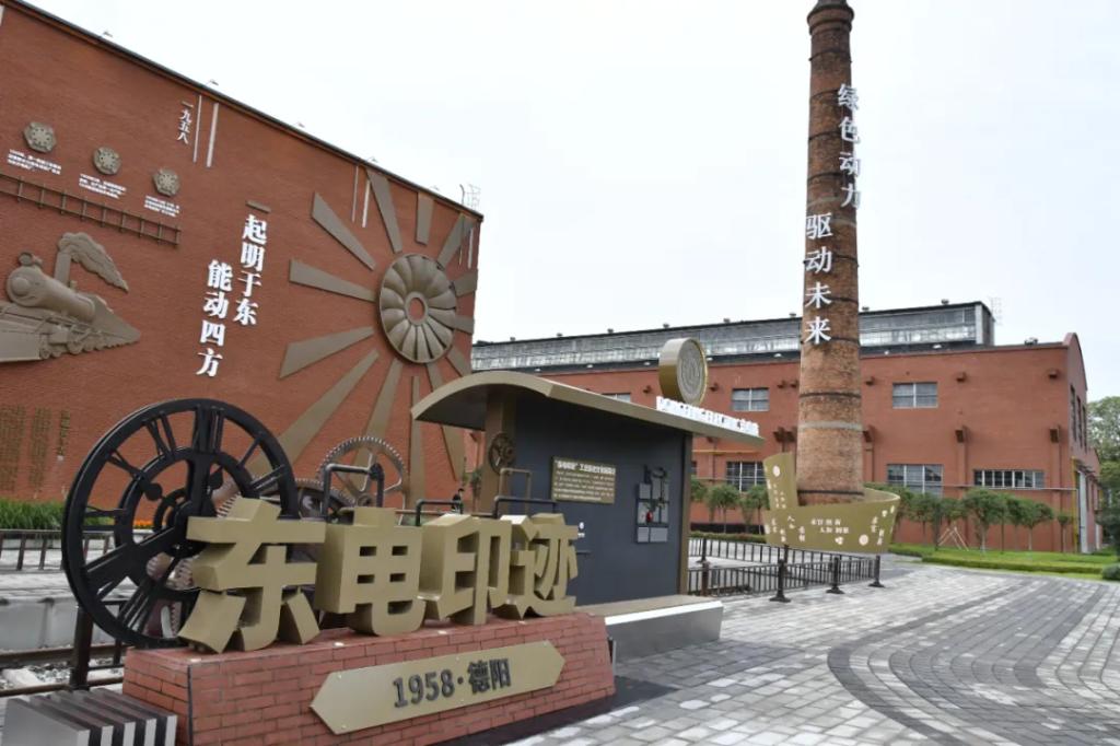 “东电印迹”工业历史文化园是以东方电气集团第一个子企业东方电机(原德阳水力发电设备厂)的铸锻车间工业遗迹为载体,保护开发建设而成的“三线建设”工业遗迹。其本体建筑建设于上世纪60年代,包括车间厂房、铸造烟囱等建筑和工业运输铁路、东方红5型机车、各类退役机床、退役电力装备产品等。